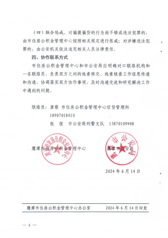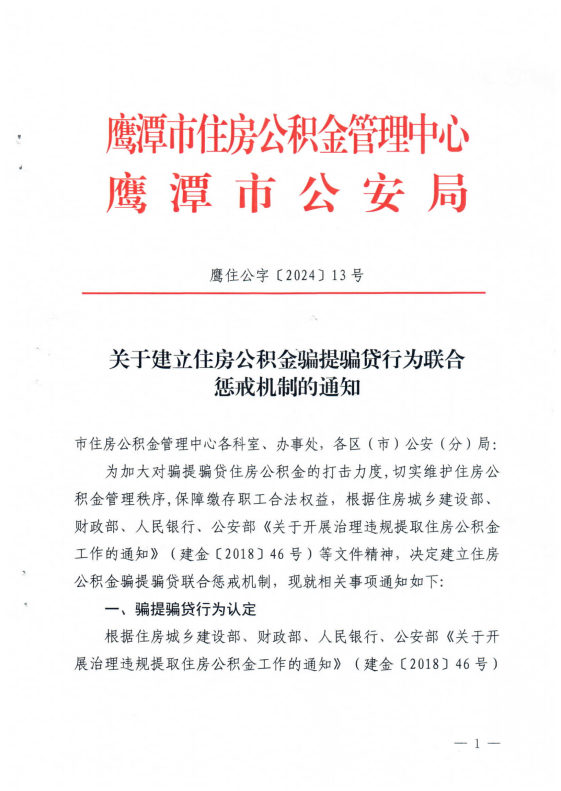 根据住建部、财政部、人民银行、公安部《关于开展治理违规提取住房公积金工作的通知》(建金〔2018〕46号),鹰潭市住房公积金管理中心、鹰潭市公安局《关于建立住房公积金骗提骗贷行为联合惩戒机制的通知》(鹰住公字〔2024〕13号),我中心近期将针对以骗提套取住房公积金为目的违规提取开展集中整治。对同一人多次变更婚姻关系购房、多人频繁买卖同一套住房、异地购房尤其是非户籍地、非缴存地购房等申请提取住房公积金列为严格审核内容。对被认定为骗提套提的,我中心将冻结其个人公积金账户最长5年不得使用,并与市公安局联合开展惩戒。